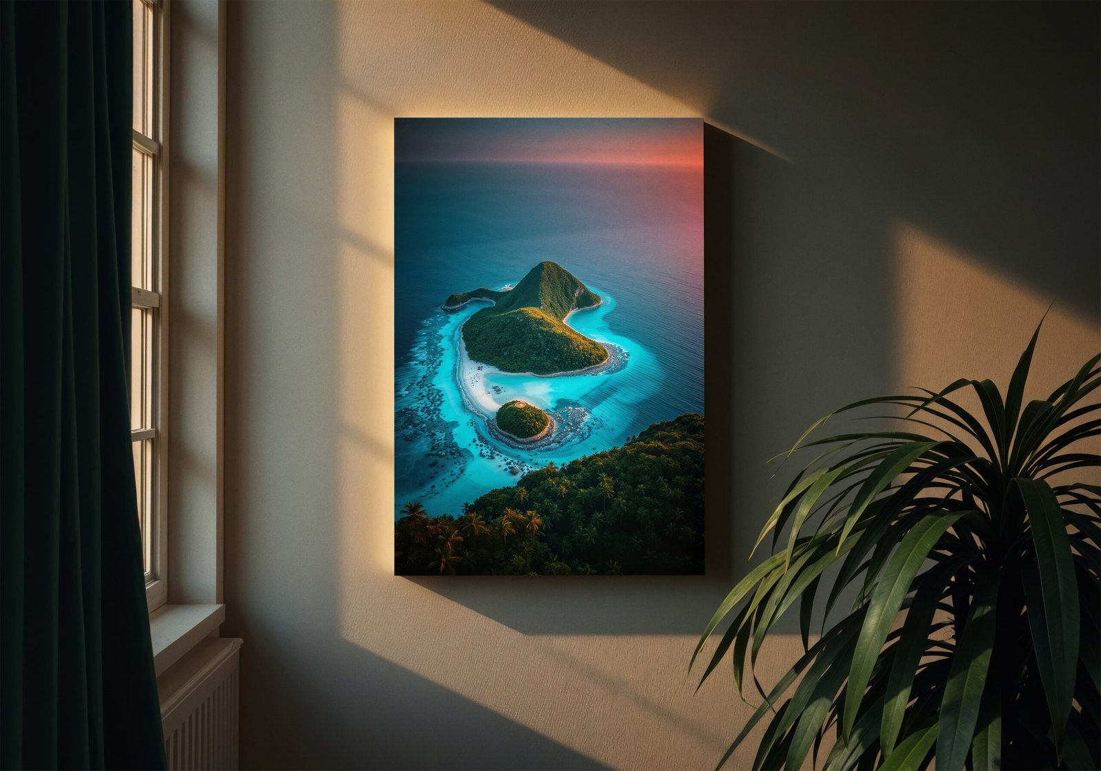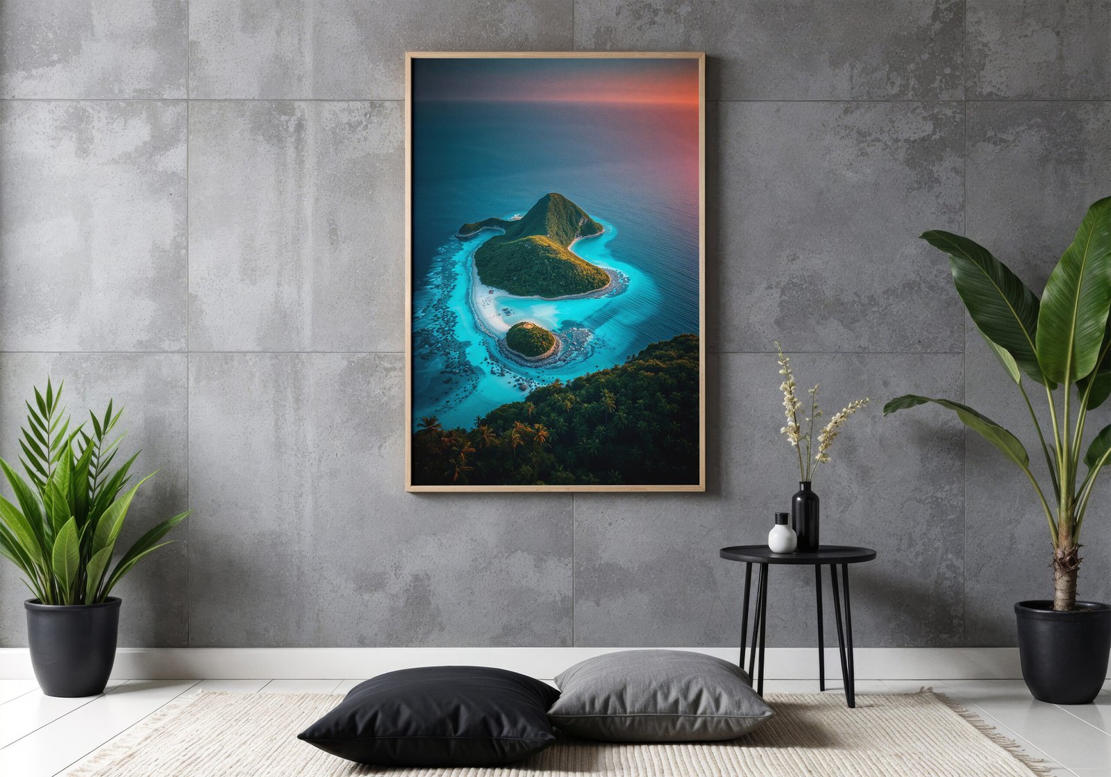 Breng een frisse en exotische sfeer in je ruimte met deze indrukwekkende eiland poster. Een tropisch eiland wordt omringd door helder turquoise water en vormt een perfect harmonieus geheel.