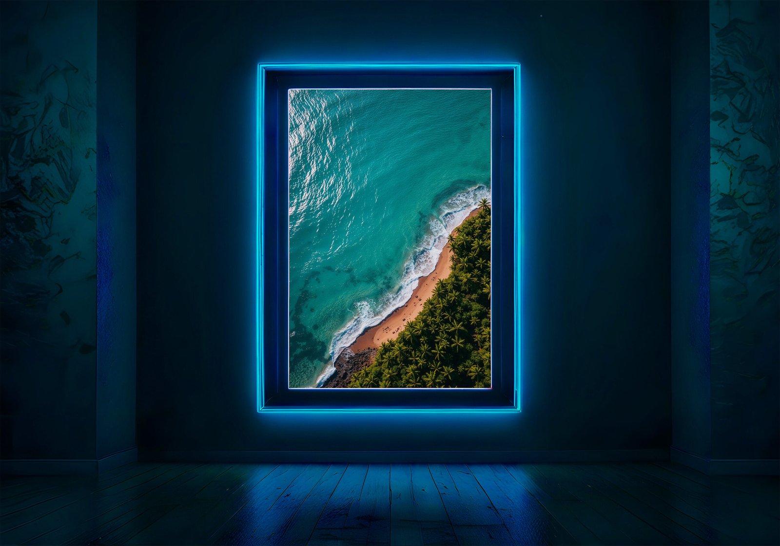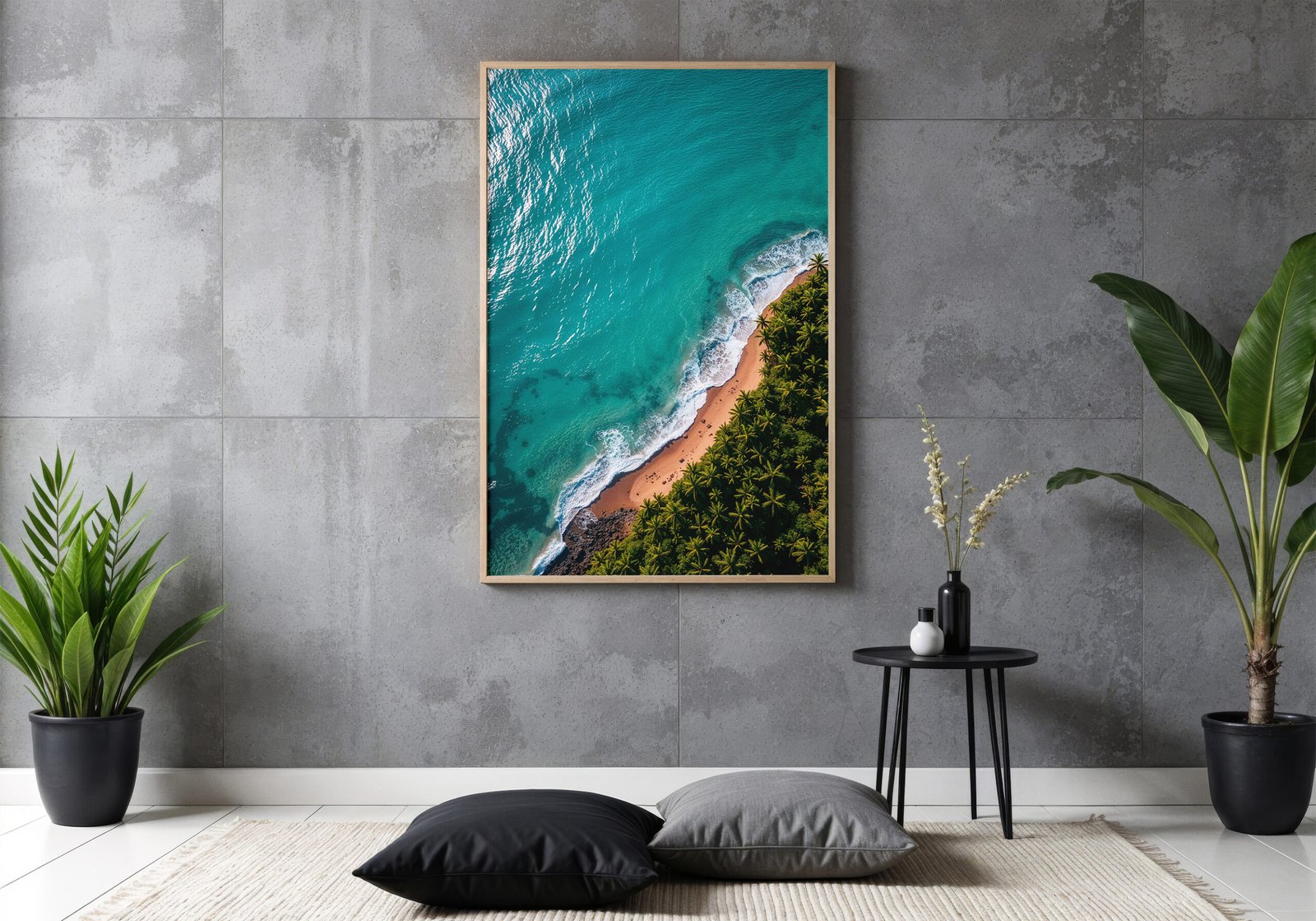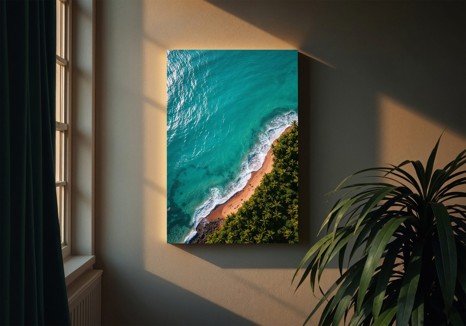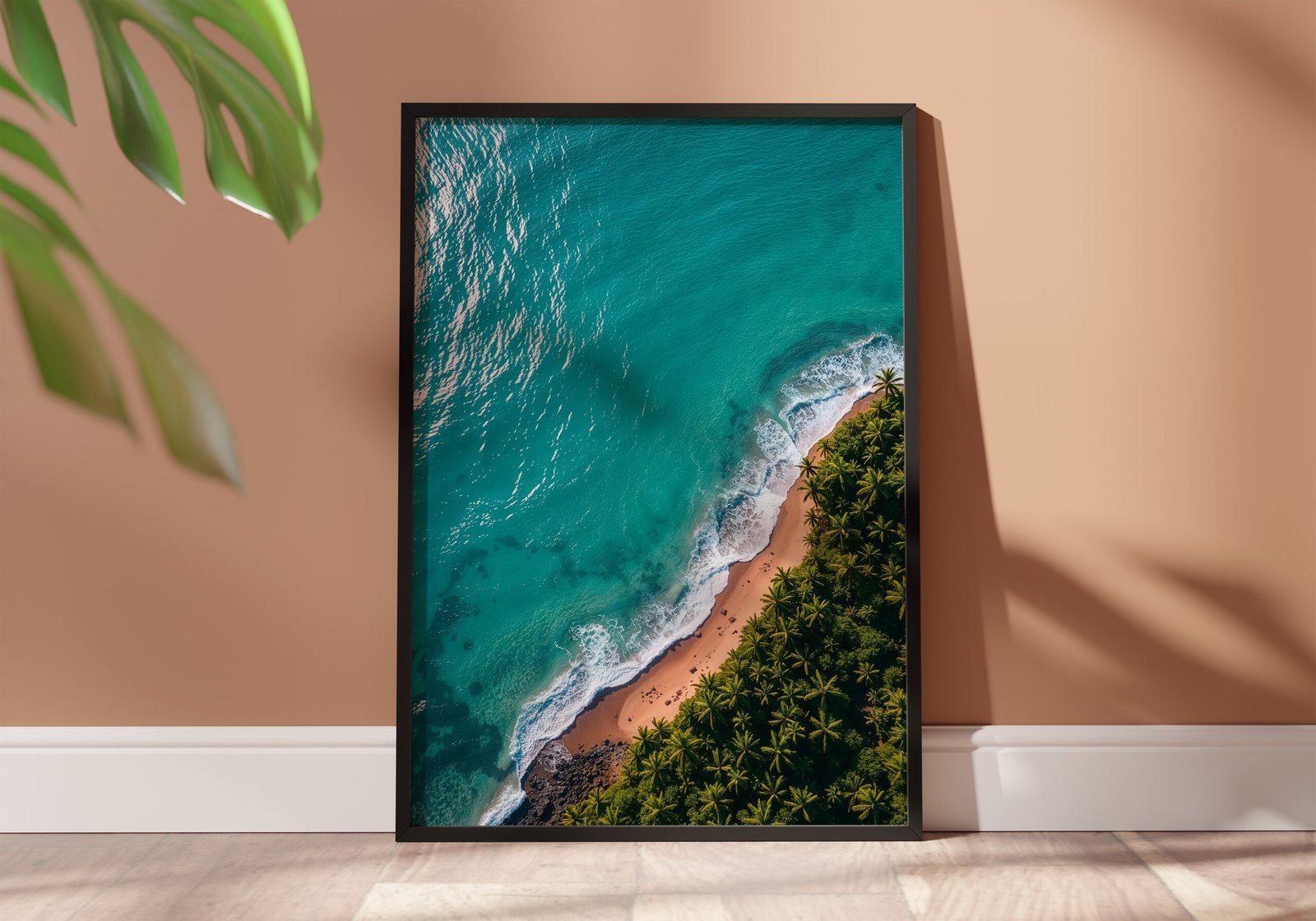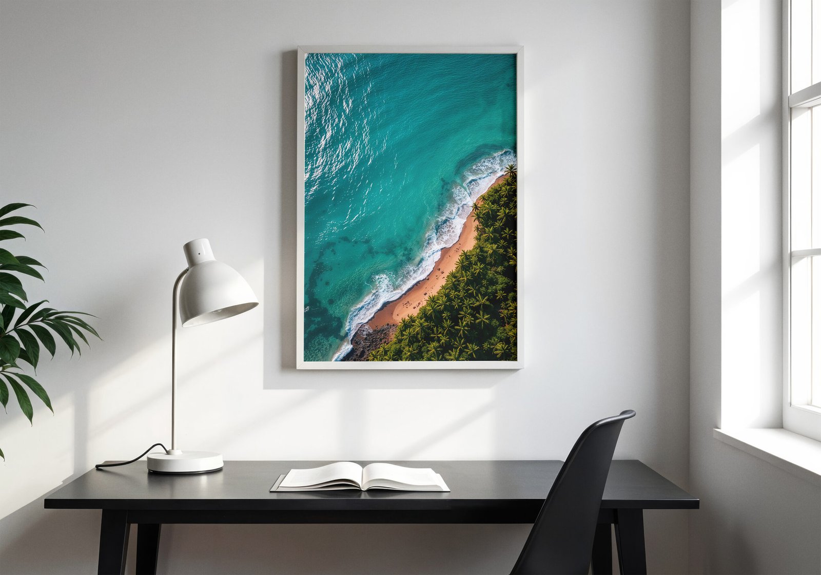 Breng een minimalistische en rustgevende sfeer in je ruimte met deze kustposter. Helder turquoise water en zacht wit schuim vormen een eenvoudig maar krachtig beeld.